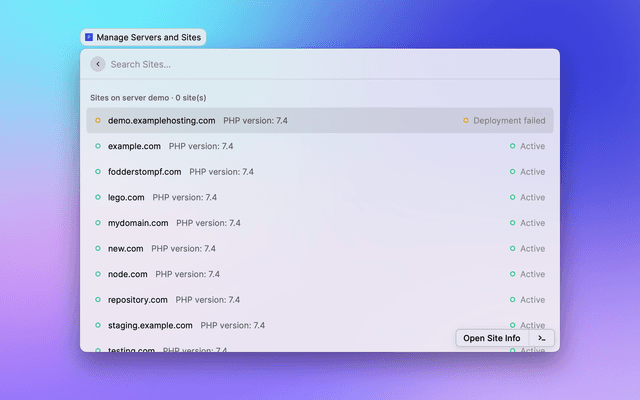 A Raycast plugin for managing your servers & sites by Ploi.