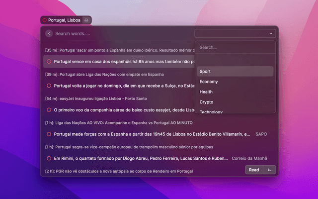 Here you can see the latest news on your country without naming it. You can ignore some news sources if you will and select the category you want to see at the moment.