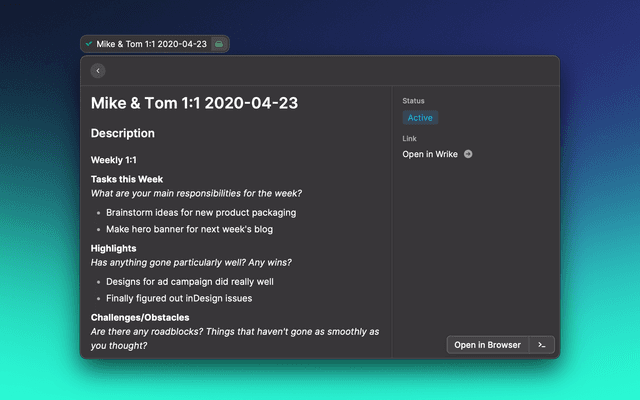 Allows you to search for Wrike tasks from Raycast