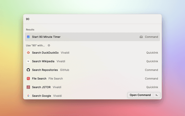 This is a lightweight extension allowing you to start and stop countdown timers, stopwatches, and alarms. It works directly in Raycast, no external apps or dependencies required.