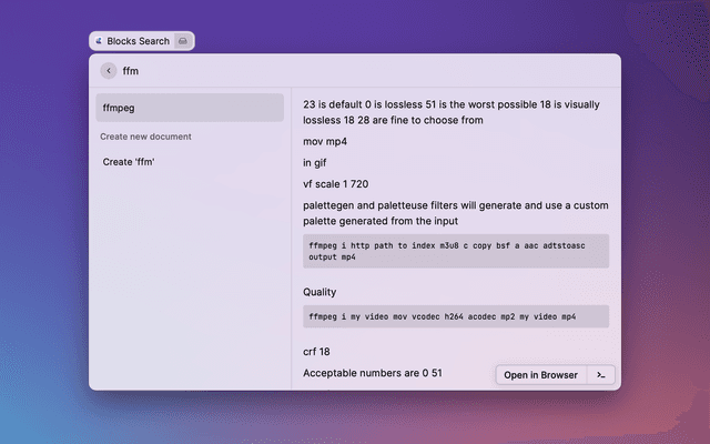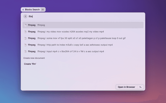 Allows you to search for the Craft documents. the search works through all spaces that Craft has locally available.
