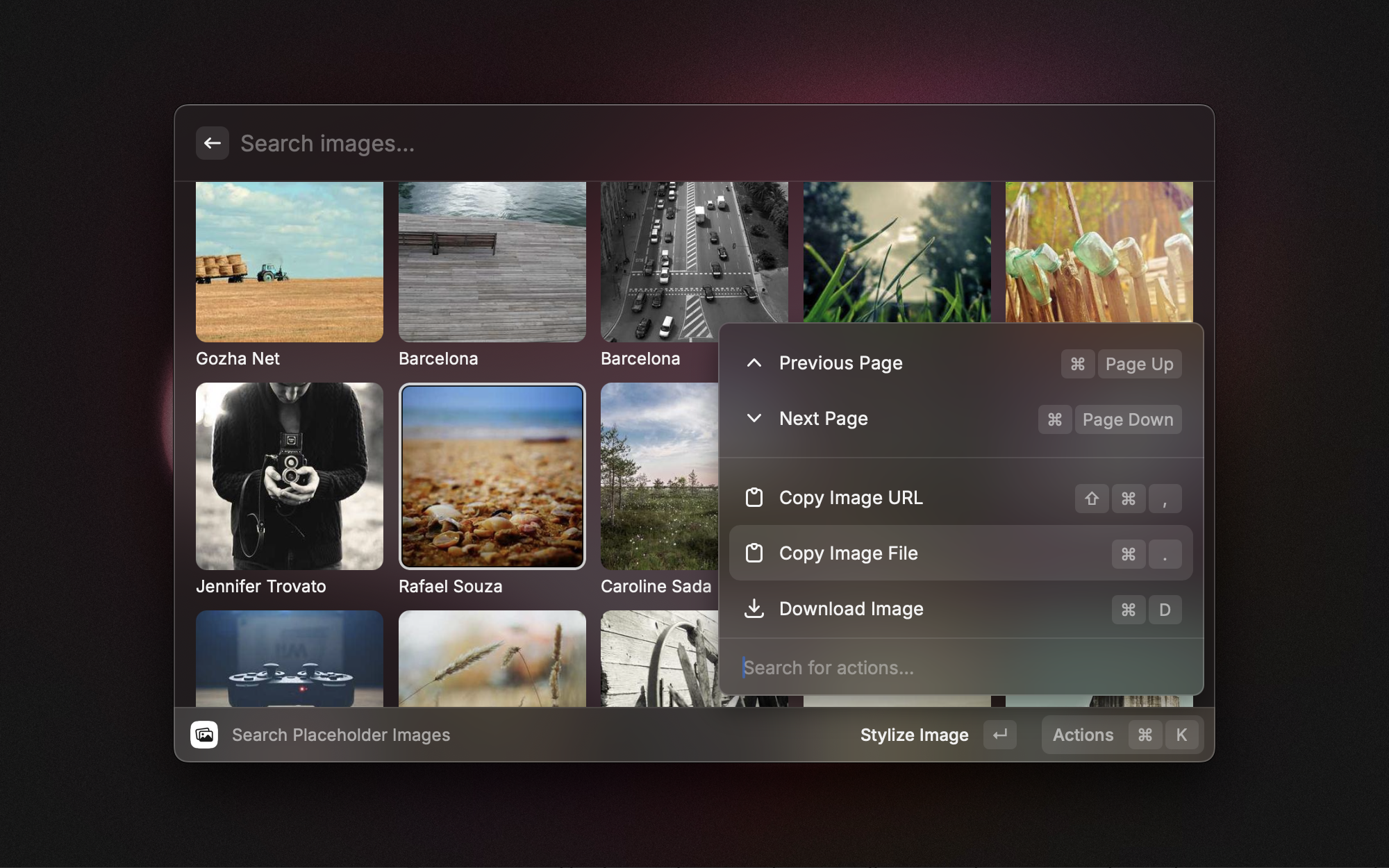 Placeholder images are great to make a design more lively. Then, you can use the Placeholder extension made by koinzhang for that purpose. Open the command to browse images, select one, resize it, copy it, and you’re good to do.