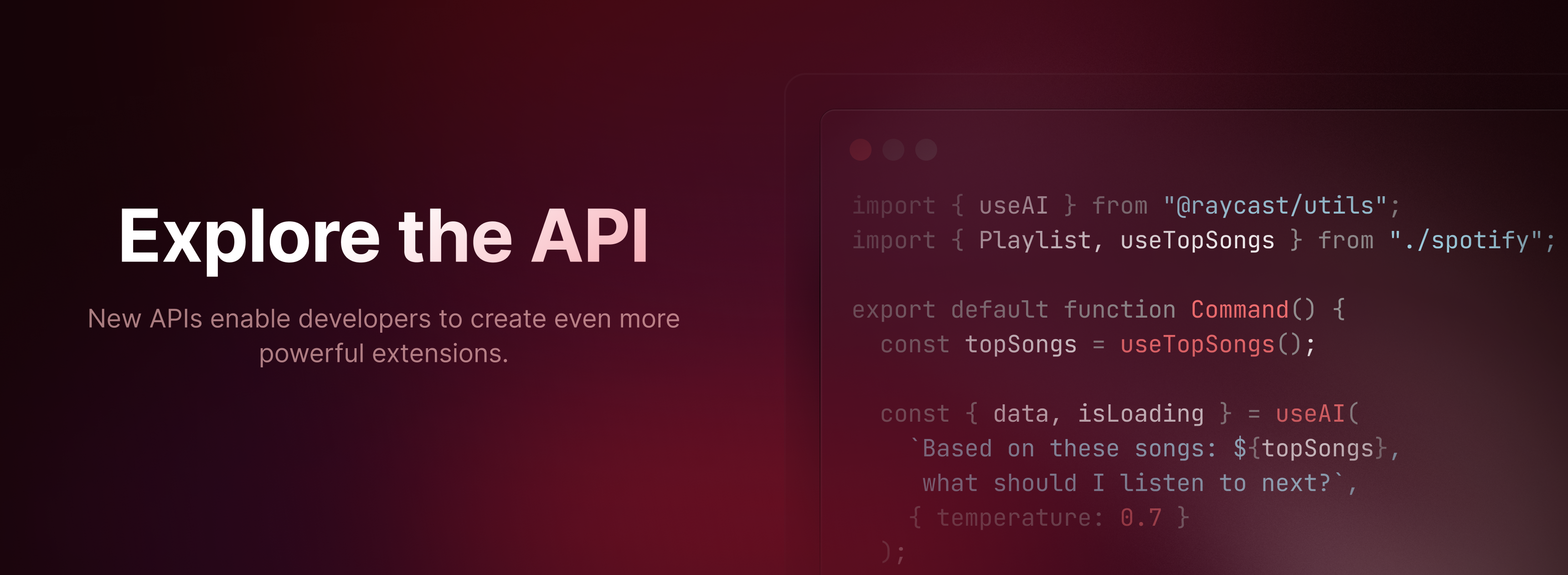 We've stabilized the APIs for AI during the Raycast AI beta, so extensions that rely on them can now be distributed through our Store. This means all Raycast users can benefit from these extensions. We're always amazed by what you create and can't wait to see how you'll integrate AI into your extensions.