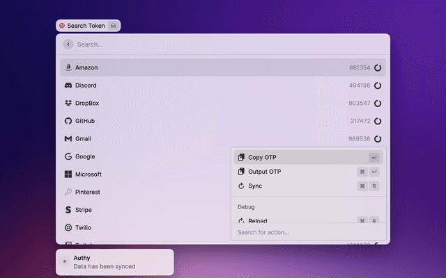 Warning: This extension is using Authy private api and may not compliant with the Terms of Service of Authy. Use at your own risk.