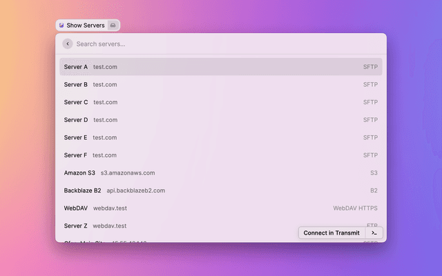 Displays a list of Transmit favorites for quick connecting outside of the app.