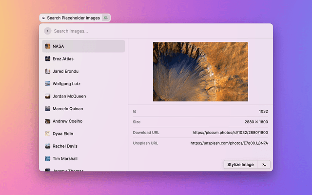 If you find an image you like in the Search Placeholder Image command, you can use the Set Desktop Wallpaper action to set it as your desktop wallpaper.