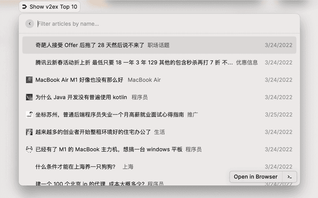 You can quickly access the 10 most popular posts of v2ex at the moment. Note: The v2ex home page can be reached by visiting https://www.v2ex.com/ through your browser. For users in China, proxy access is supported.