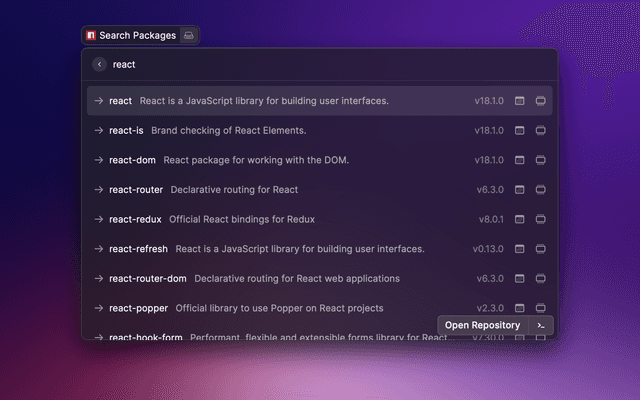 Raycast extension to search for npm packages using npms.io