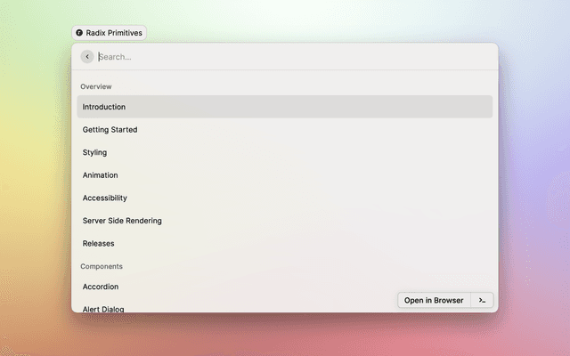 Interface with the Dash application, allowing users to quickly search through documentation sets.