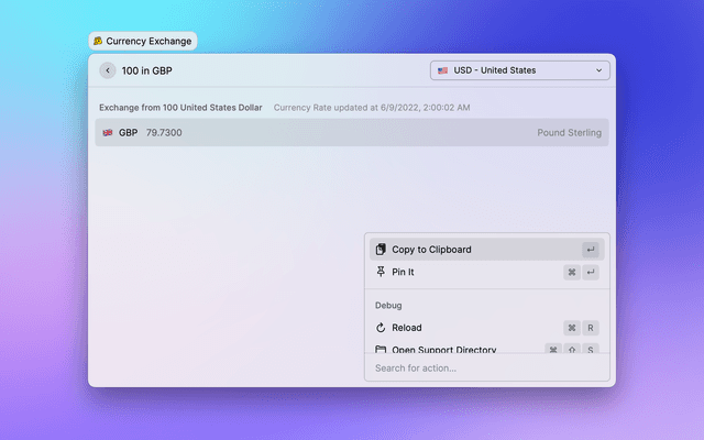 There's a currency exchange function out of box in Raycast's Calculator.